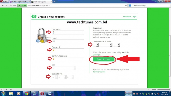 Step 2 : সবগুলোঘর পূরণকরে "Open Account" এ ক্লিক করুন।