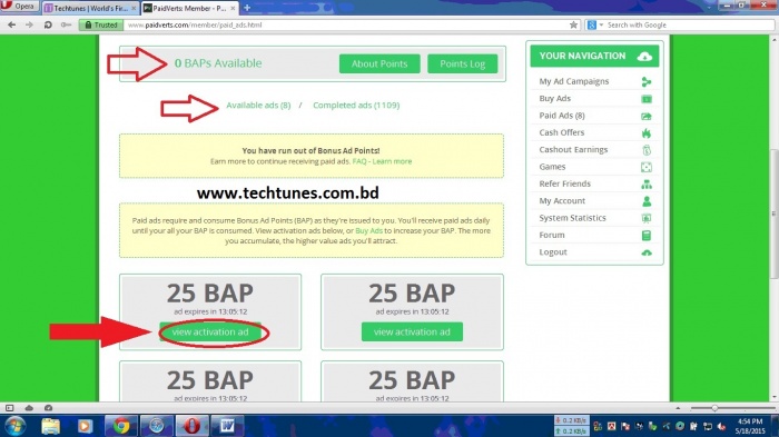 Step 10 : এতক্ষণ ধরে একটা 25 BAP করলাম এবার আরেকটা 25 BAP এর "View Activation Ad" ক্লিক করুন। এভাবে ৮টি BAP করুন। সময় লাগবে ৪ মিনিট।