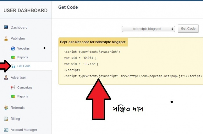 এটাও Popunder এড কেউ আপনার সাইটের শুধু যে কোন লিংকে ক্লিক করলে অটো পপআপ এড বেরোবে সাথে আপনার আয় হবে। এই কোডটিও ডান পাশে পাবেন।