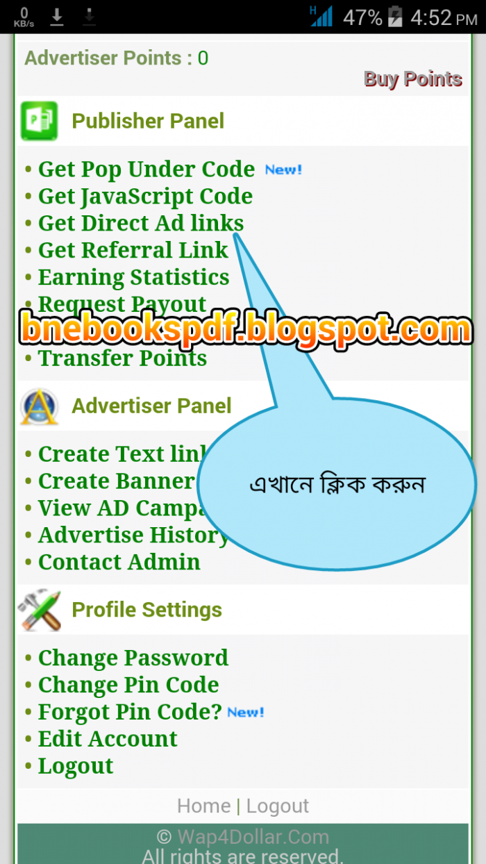নিজের ব্লগ না থাকলে Get Direct Ad links এ ক্লিক করুন সেখান থেকে লিংক গুলো বিভিন্ন ব্লগে লেখার মাঝে দিয়ে দিন (যে সব ব্লগে আপনি লিখেন)।