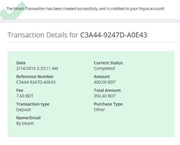 ৪। ব্যাস কাজ শেষ! সফলভাবে সমাপ্ত হলে আপনি আপনার মোবাইলে বিকাশ হতে একটি বার্তা এবং সেই সাথে পেজা হতে সামারি হিসাবে মেইল বার্তা পাবেন তথ্যসূত্র হিসাবে নিম্নরুপ