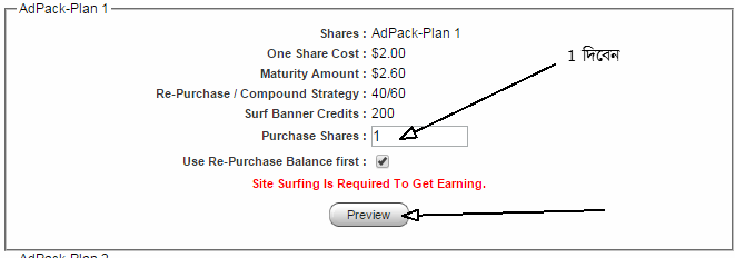Ads Pack কিনে, Ptc ads ও Surf দেখা।