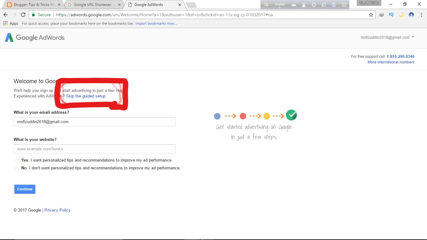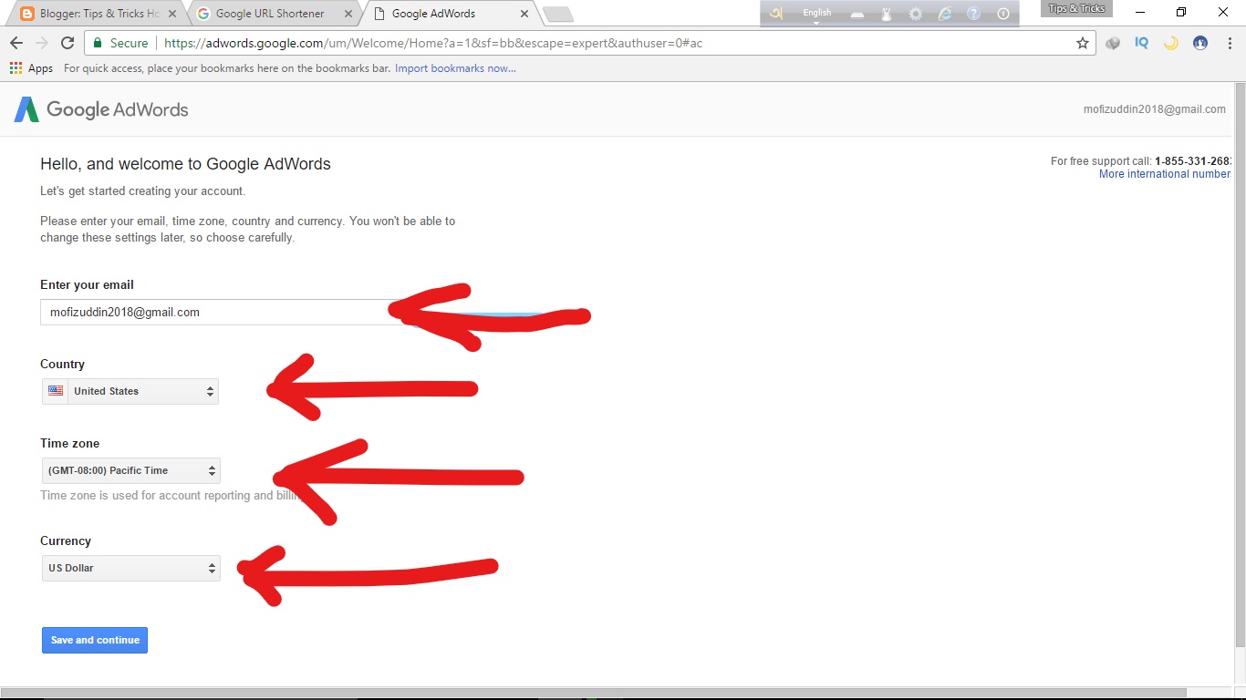 ইমেইল ঠিক থাকবে Country দিবেন বাংলাদেশ Time zone দিবে +৬.০০ Currency দিবেন US Dollar. যা আছে তাই তারপর Save & Continue তে ক্লিক করবেন নিচের ছবির মতো আসবে