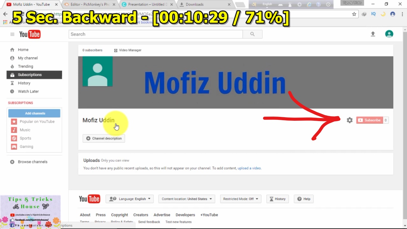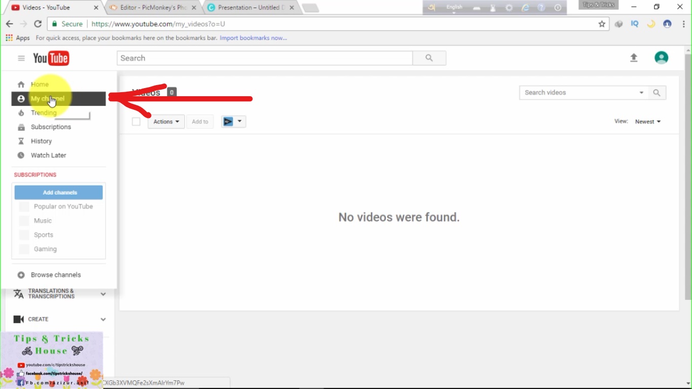 ক্রিয়েট হয়ে গেলো আপনার চ্যানেল। এবার আসুন আমরা কাস্টমাইজ করা শিখব। কাস্টমাইজ করার মতো নিচের ছবি দেখে নিন। বাম দিকে My Channel এ ক্লিক করেন।