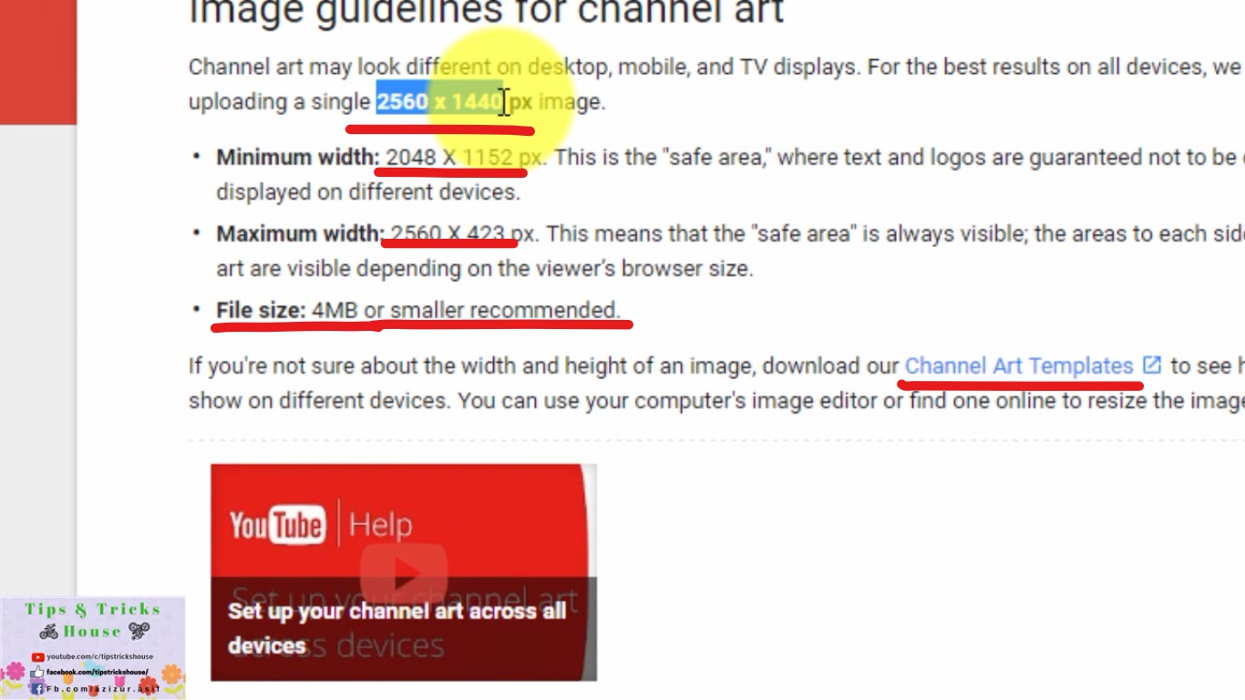 ক্লিক করে চ্যানেল আর্ট আপলোড করুন। আর চ্যানেল আর্ট এর সাইজ কেমন হবে তা নিচের ছবি থেকে জেনে নিন।