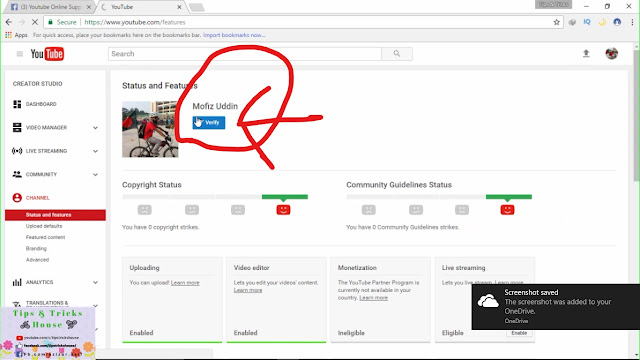 ভেরিফাই এর জন্য প্রথমে আপনার ইউটীউব এ সাইন ইন করুন তারপর নিচের ছবির মত কাজ করুন :