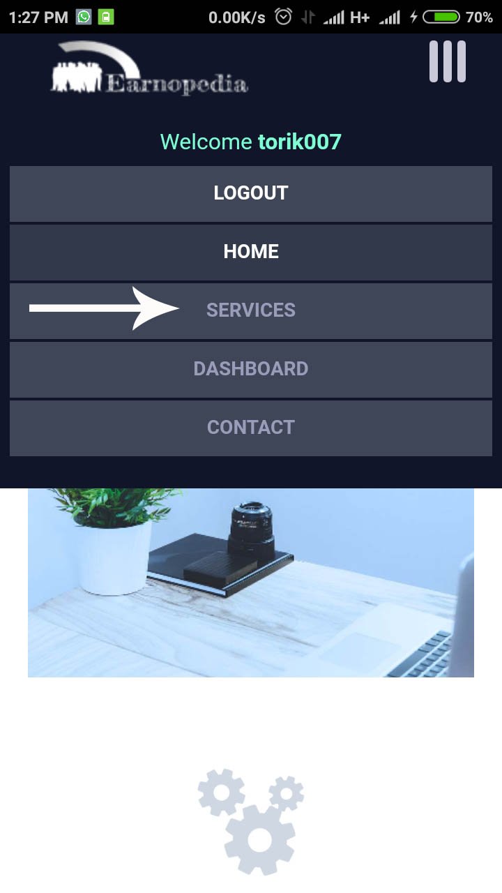 *এবার Chrome Browser দিয়ে লগিং এ ক্লিক করুন আপনার ইউজার নেম & পাসওয়ার্ড দিয়ে লগিং করুন।মেনুবারে ক্লিক করলে Service এ সব কাজ পাবেন।