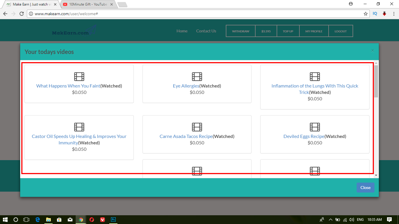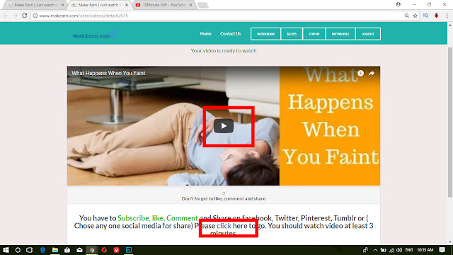 ৬। এইবার আপনার কাজ। এই খানে আপনি ২০টা ভিডিও পাবেন প্রতিটার উপরে ক্লিক করুন আর এক এক করে ভিডিও দেখুন ৩মিনিট করে। ৩মিনিট হলে ভিডিও নিজে থেকে অফ হয়ে যাবে।