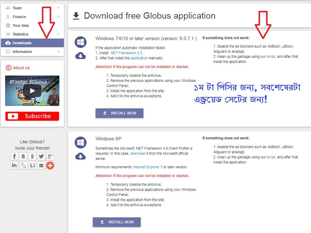 ৬। যেমনঃ মনে করি, যারা পিসিতে ব্যবহার করবেন তারা ১ম টি ইনস্টল করবেন। এবং হ্যা পিসিতে ইনস্টল করতে গেলে আপনাকে Network Framework 4.5 পিসিতে ইনস্টল থাকতে হবে। Add blocker, Blocker Plus জাতীয় প্লাগিন বন্ধ রাখতে হবে। কিছু এন্টিভাইরাস সমস্যা করতে পারে তার জন্য ডিজাবল রাখতে হবে। তবে ইসেট এন্টিভাইরাস এখানে তেমন সমস্যা করেনা দেখেছি। এবং যারা অ্যান্ড্রয়েডে ব্যবহার করবেন তারা সবার নিচেরটা ইনস্টল করবেন।