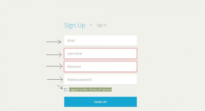 * তারপর নিচের মত করে Email, Username, Password, Repeat Password এর ঘর গুলোতে প্রয়োজনীয় তথ্য পূরণ করে এর ঘরে একটা টিক দিয়ে Sign Up এ ক্লিক করুন।