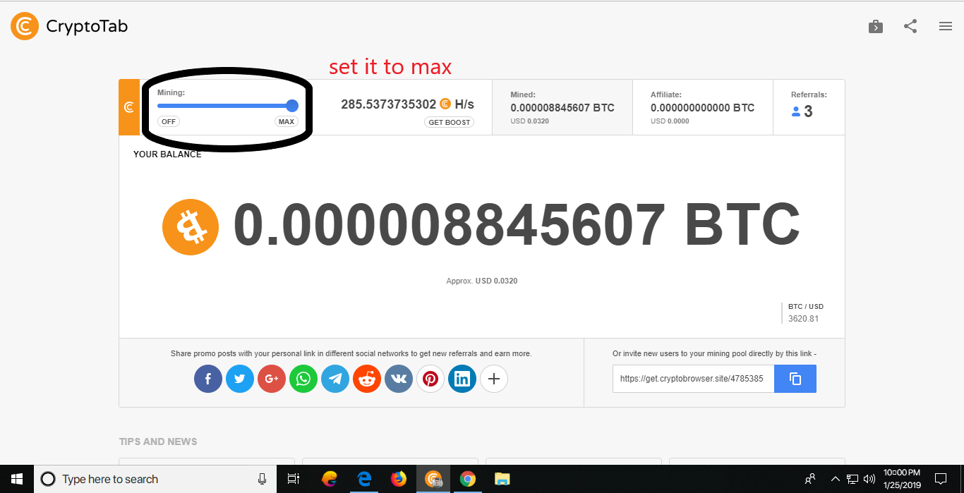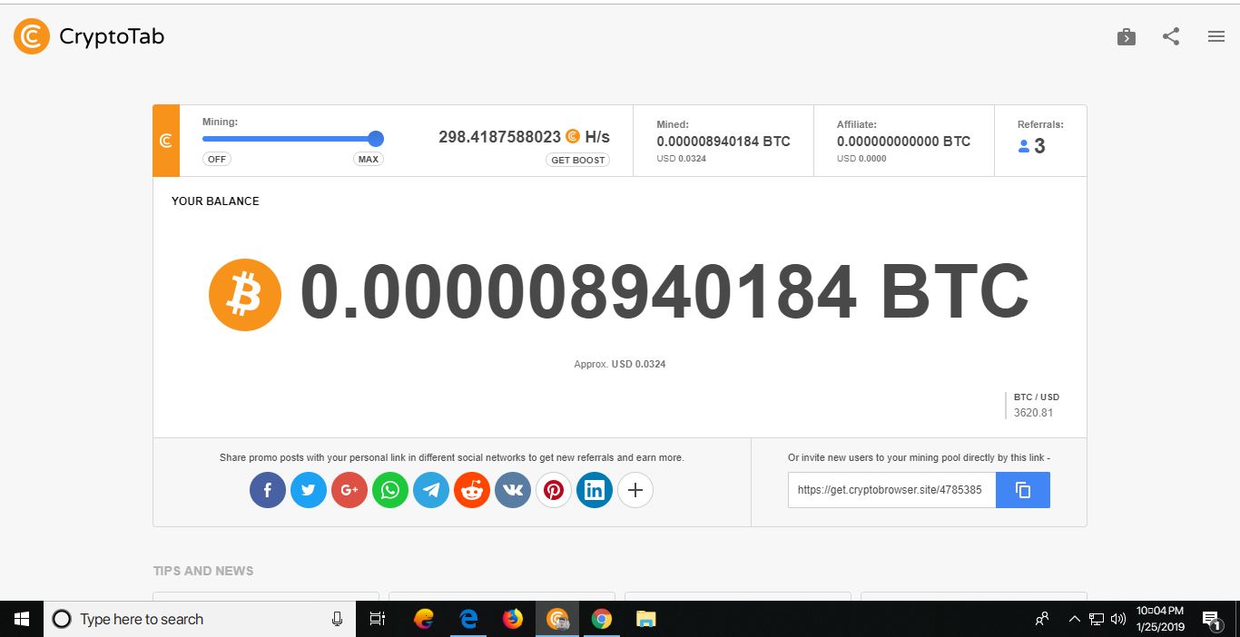 যাদের ভাল কম্পিউটার আছে তারা এই ক্রিপ্টোট্যাব ব্রাউজার টি ইন্সটল করে সহজেই বিটকয়েন মাইনিং করতে পারবেন আর এই সাইটটি থেকে মাত্র $০.০৩৬ USD হলেই কয়েনবেইজে উইথড্র করা যায়।