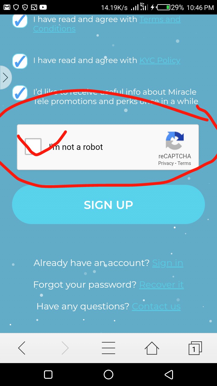 I’m not robot এ ক্লিক করে কেপচা পুরন করুন।