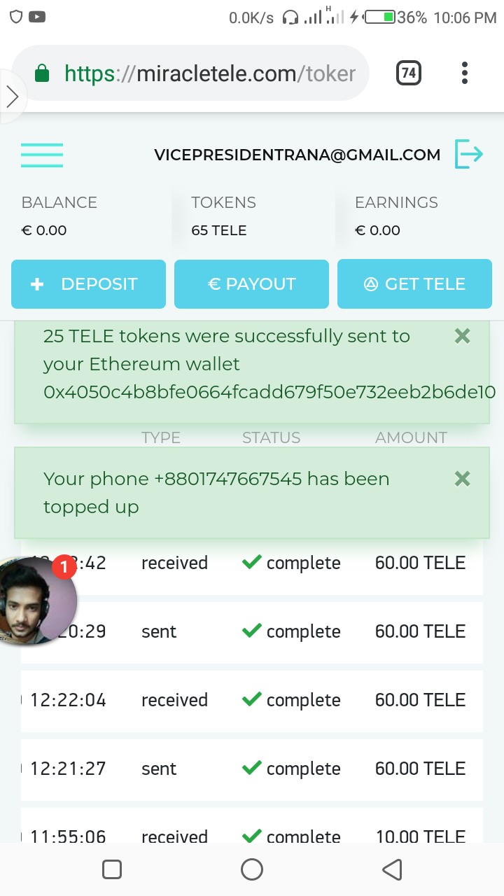 ১/ আজ রাত ১০:০৬ এ পেমেন্ট রিকোয়েস্ট দেয়ার ১০ সেকেন্ড এর মধ্যে ৬০ টোকেনের জন্য ৬৮৫ টাকা পেয়েছি।