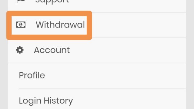 উইথড্র করতে Menu তে ক্লিক করে Withdrawal বাটনে ক্লিক করুন।