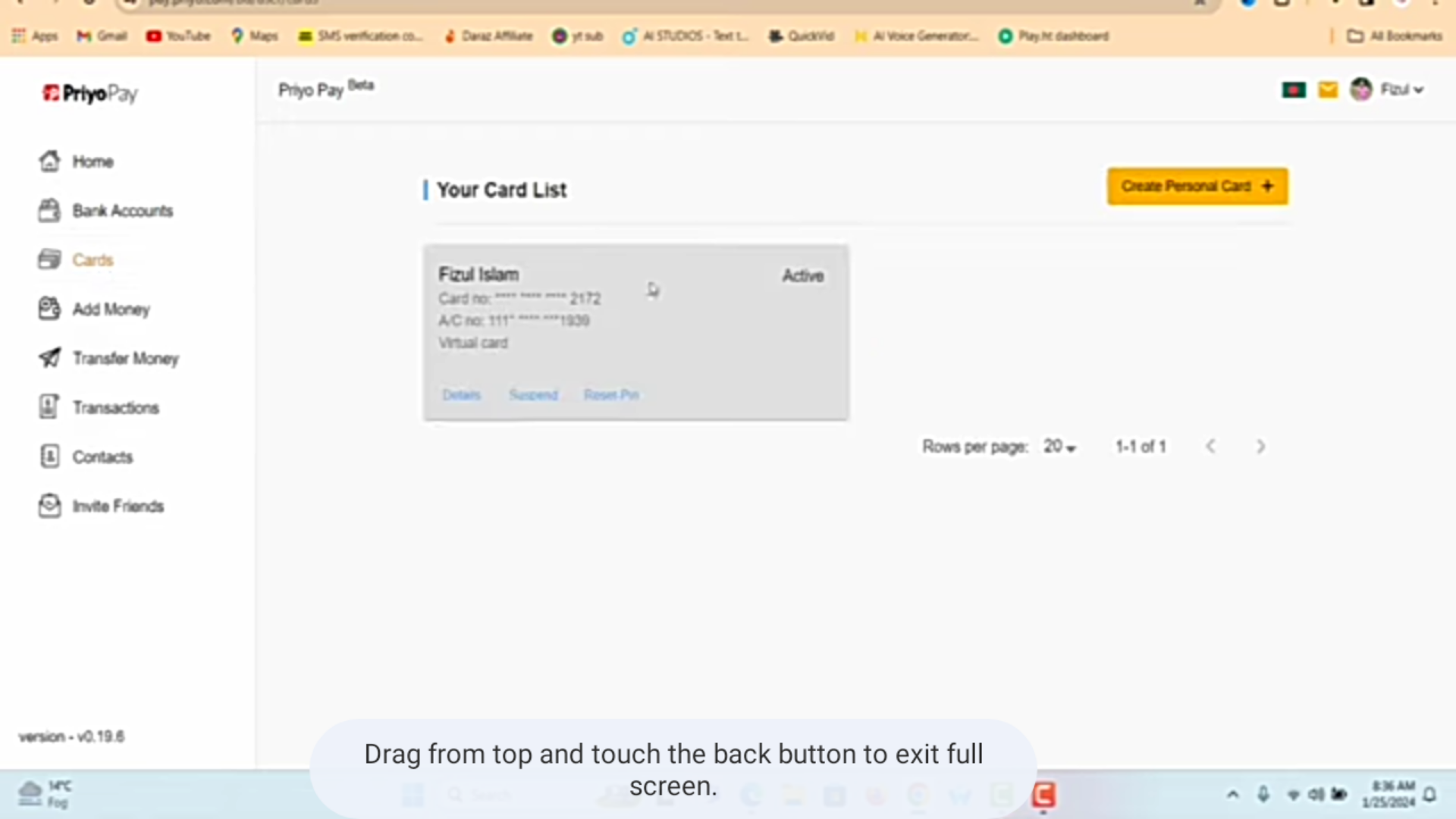 এরপর আপনি যদি ডেবিট মাস্টার কার্ড নিতে চান তাহলে বাম পাশের Card লেখাতে ক্লিক করে Apply for a mastercard এ ক্লিক করবেন। তাহলে আপনার মাস্টার কার্ডের জন্য আবেদন করা হয়ে যাবে। এরপর কিছুদিনের মধ্যে আপনাকে একটি ভার্চুয়াল মাস্টার কার্ড দেওয়া হবে।