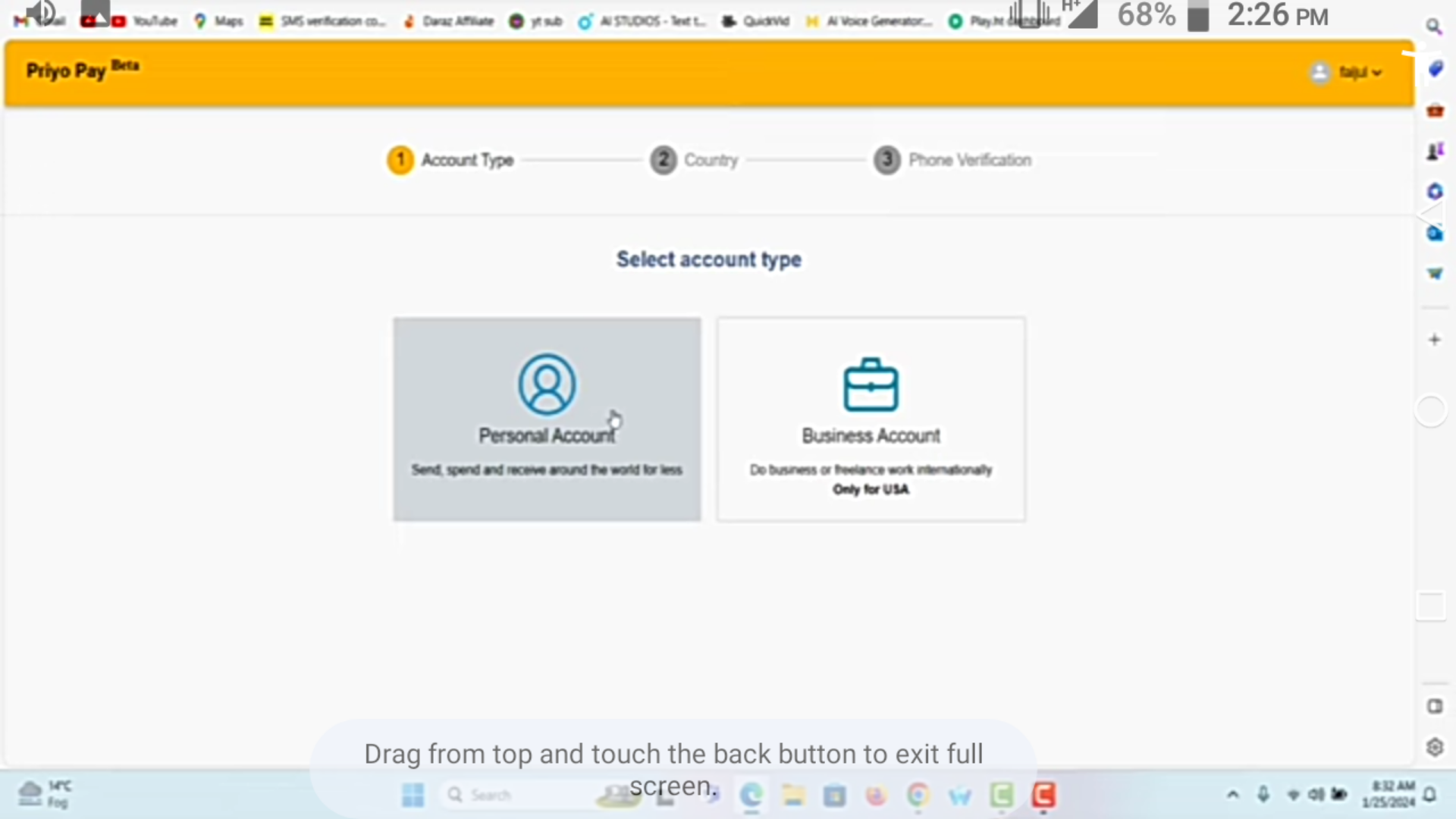 তারপর ওই ইমেইলে একটি ভেরিফিকেশন মেইল যাবে। ওই মেইলের লিংকে ক্লিক করে আপনার একাউন্টটি ভেরিফাই করে নিবেন। এখন আপনার নিকট প্রশ্ন করা হবে যে আপনি পার্সোনাল একাউন্ট খুলতে চান নাকি বিজনেস একাউন্ট খুলতে চান। আপনি অবশ্যই পার্সোনাল একাউন্ট সিলেক্ট করবেন। কারণ বাংলাদেশ থেকে শুধু পার্সোনাল একাউন্ট খোলা যায় এখানে। বিজনেস অ্যাকাউন্ট খুলতে হলে আপনাকে অবশ্যই মার্কিন যুক্তরাষ্ট্রের নাগরিক হতে হবে।