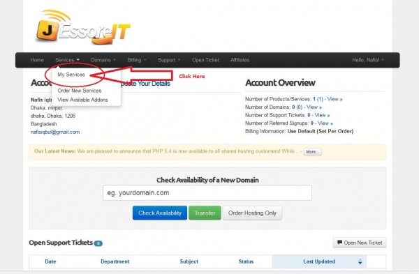 মেনু বার থেকে Domain & Hosting এ ক্লিক করুন