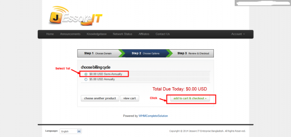 এবার প্রথম আপশন টি ($0.00 USD Semi-Annually) সিলেক্ট করুন এবং add to cart & checkout এ ক্লিক করুন