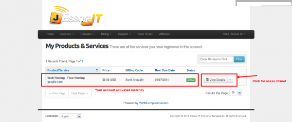 এবার আপনার সক্রিয় হোস্টিং টি দেখতে পাবেন এখন সি প্যানেল Access করতে view Details এ ক্লিক করুন।