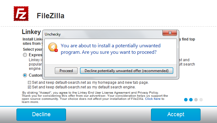 একটা কথা মনে রাখবেন, অনাকাঙ্খিত অ্যাপ্লিকেশন কিন্তু নিজে নিজে ইনস্টল হয় না। আপনার বেখেয়ালে আগে থেকে চেক করে থাকা অপশনের কারনে এই সব অ্যাপ্লিকেশন পিসিতে ইনস্টল হয়। যারা সচেতন তারা সাবধানতার সহিত অ্যাপ্লিকেশন ইনস্টল করলেও অসাবধানদের জন্য প্রয়োজন Unchecky সফটওয়্যারটি। ডাউনলোড করার আগে দেখে নিন যে সফটওয়্যারটি কীভাবে কাজ করে।