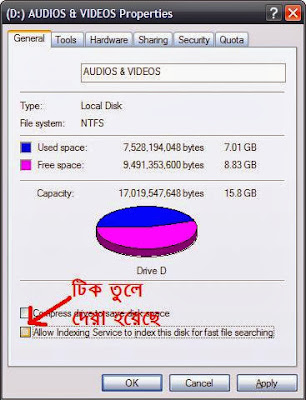 ► উইন্ডোজ এর ইনডেক্সিং বন্ধ করে দিন। ইনডেক্সিং এর মাধ্যমে উইন্ডোজ হার্ডডিস্ক এর সকল ফাইল