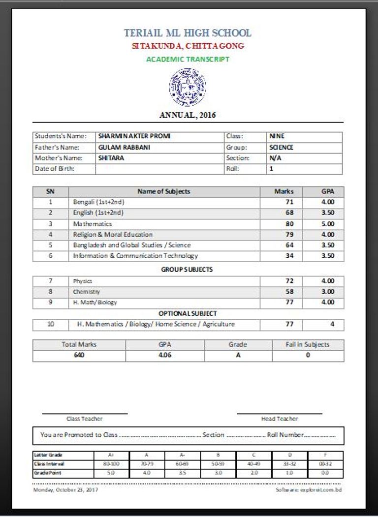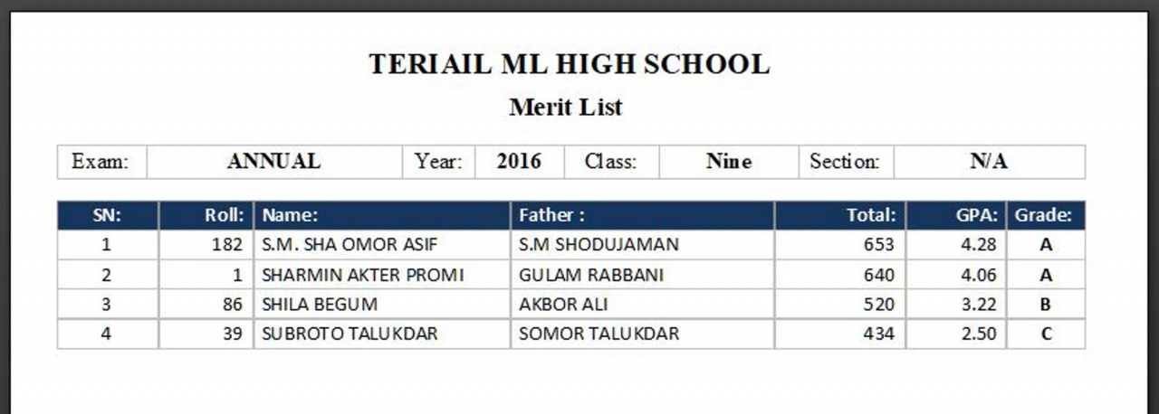 • জিপিএ > গ্রেড > প্রাপ্ত > নম্বর পূর্বের রোল নম্বর এর উপর ভিত্তি করে সয়ংক্রিয় ক্রমিক নির্ধারণ হয়