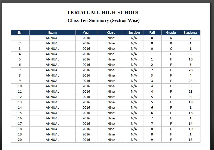 • ষষ্ঠ, সপ্তম, অষ্টম, নবম এবং দশম শ্রেণীর ফলাফল তৈরী করা যায়