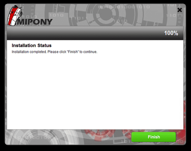 ইন্সটলেশন শেষ হওয়ার পরে ইন্সটলেশন প্রোগ্রামটি বন্ধ করতে "Finish" বাটনে ক্লিক করুন, এখন Mipony ওপেন করুন এবং ফাইল ডাউনলোড করা শুরু করুন।