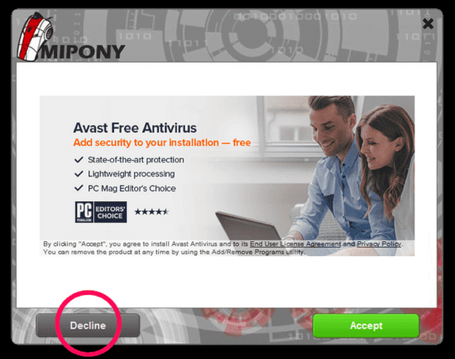 বিঃদ্রঃ কয়েকটি নোটিফিকেশনের মাধ্যমে জিজ্ঞাসা করা হবে যে, আপনি "অ্যাড-অন সফটওয়্যার" ইন্সটল করতে চান কিনা। মনে রাখবেন আপনি যদি "অ্যাড-অন সফটওয়্যার" ইন্সটল করতে না চান তাহলে "Decline" বাটনে ক্লিক করবেন অন্যথায় আপনার কম্পিউটারে এমন সব সফটওয়্যার ইন্সটল হবে যা আপনি কখনও ব্যবহারই করবেন না। যদিও এর মাধ্যমে ফ্রী সফটওয়্যার ডেভেলপারদের উপার্জন করার একটি উপায়, তবে আপনার যদি উক্ত সফটওয়্যার সত্যিই প্রয়োজন না হয়, তাহলে তা "Decline" করুন অন্যথায় "অ্যাড-অন সফটওয়্যার" আনইন্সটল করতে সমস্যা হতে পারে।