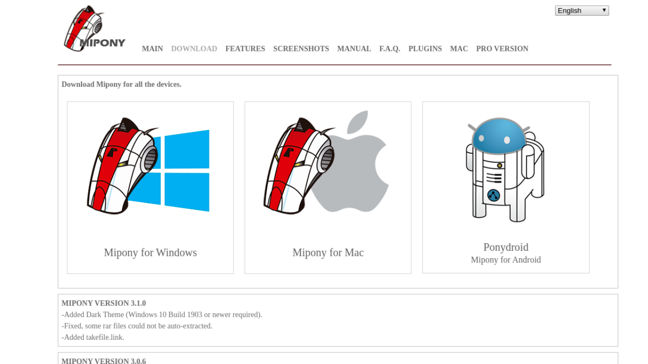 Mipony (White Horse Downloader) উইন্ডোজ এবং ম্যাক উভয় প্ল্যাটফর্মেই ফ্রিতে ডাউনলোড এবং ইন্সটল করতে পারবেন এবং মোবাইল ডিভাইসের জন্য ডাউনলোড ম্যানেজমেন্ট টুলস হিসাবে অ্যান্ড্রয়েডের জন্য অ্যাপ রয়েছে, আর এটি জনপ্রিয় ১৬০ টিরও বেশি ফ্রী ডাইরেক্ট ডাউনলোড সাইটের সার্ভিস সমূহ সাপোর্ট করে থাকে, যেমনঃ PUTLOCKER, Zippyshare, Nitroflare, Uploaded, Bitshare, RAPIDGATOR, Mediafire, Turbobit, Yandex, Filevice, 4shared, Letitbit, Oboom, MEGA ইত্যাদি অন্তর্ভুক্ত।