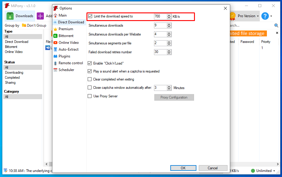 যদি আপনার ইন্টারনেটের স্পীড ফাস্ট না হয় বা মোট ট্রাফিকের পরিমাণ লিমিট করা থাকে তাহলে আপনি ইন্টারনেটের সামগ্রিক স্পীড না কমিয়ে আপনার ডাউনলোডের স্পীড এবং ম্যাক্সিমাম ডাউনলোড সংখ্যা নির্ধারণ করতে পারবেন আর আমার কাছে মনে হয় এটিই Mipony এর সবচেয়ে উপকারী ফিচার।