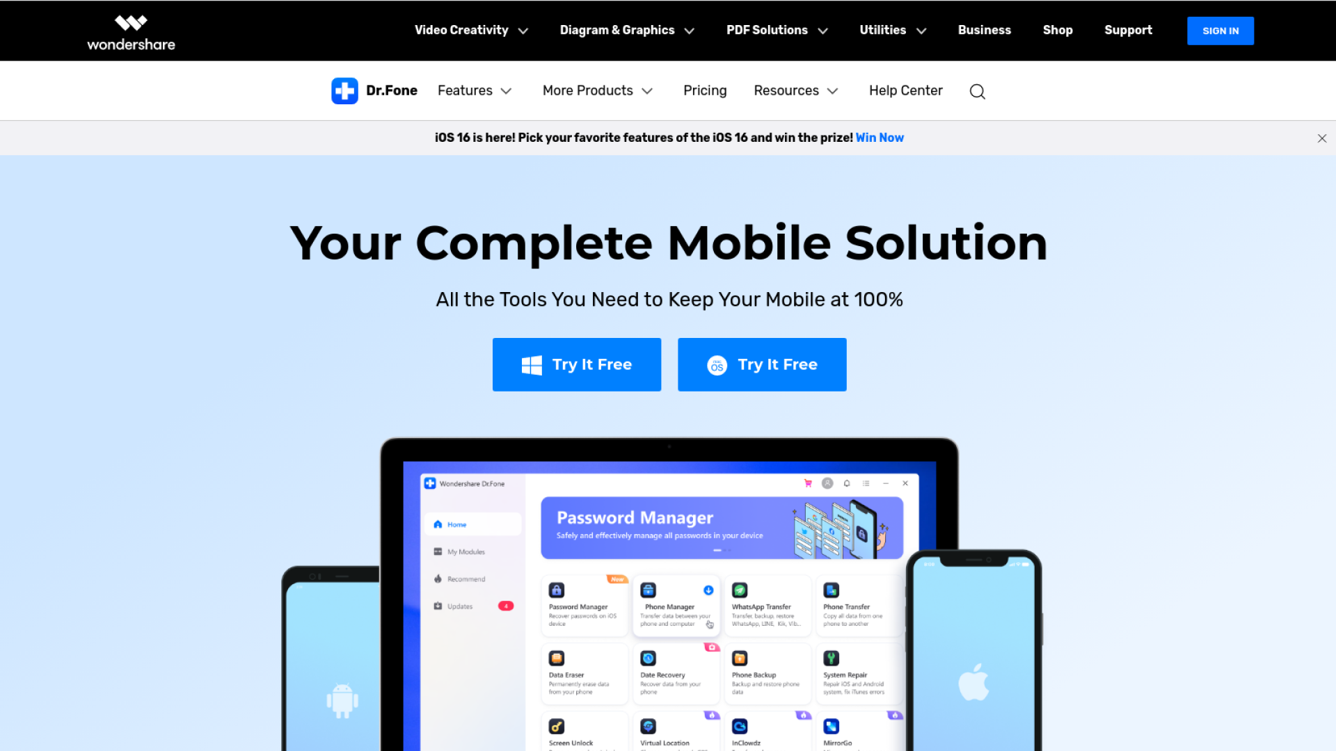 কেমন হবে যদি এই সমস্যা গুলোর সমাধান একটি সফটওয়ারের মধ্যে পাওয়া যায়? যেকোনো সফটওয়ার সমস্যা সমাধান করা যায় এবং ডেটা ব্যাকআপ নেয়া যায়। এমনই একটা অল ইন ওয়ান সমাধান হচ্ছে Wondershare এর Dr.Fone।