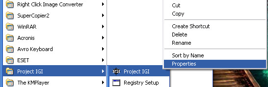১. Start Menu থেকে Project IGI ফাইলটির Properties এ যান।
