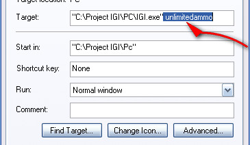 অথবা, "C:\Project IGI\PC\IGI.exe" unlimitedammo