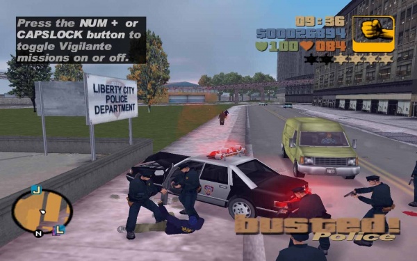 গেমটিতে ক্রিমিনাল কার্যকম (হাইজ্যাক, খুন ইত্যাদি) বেশি চালানে ওয়ান্টেড লেভেল বাড়বে। যা গেমটিতে তারকা চিহ্নিত করে দেখানো হয়। যত বেশি তারকা তত বেশি ওয়ান্টেড লেভেল এবং যত বেশি ওয়ান্টেড লেভেল বাড়বে তত বেশি শক্তিশালি আইনী ফোর্স তোমাকে গ্রেফতারের চেষ্টা চালাবে। গেমটিতে তিন ধরণের আইনী ফোর্স রয়েছে। পুলিশ, এফবিআই এবং সেনাবাহিনী। একবার গ্রেফতার হলে ক্ল্যাউডকে পুরনায় পাওয়া যাবে লোকার পুলিশ স্টেশনে কিংবা হাসপাতালে অবস্থা ভেদে। তবে তখন তার সমস্ত অস্ত্র পুলিশ রেখে দিবে এবং হাসপাতাল কর্মীরা হাসপাতাল ফি এবং পুলিশরা কিছু টাকা ঘুষ হিসেবে রেখে দিবে।