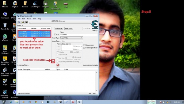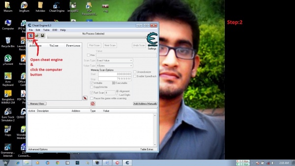 2)এবার alt+tab বাটন চেপে গেম থেকে বেরিয়ে আসুন ।তারপর Cheat Engine ওপেন করে Cheat Enginer computer বাটনে ক্লিক করুন ।