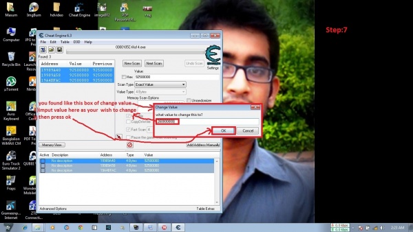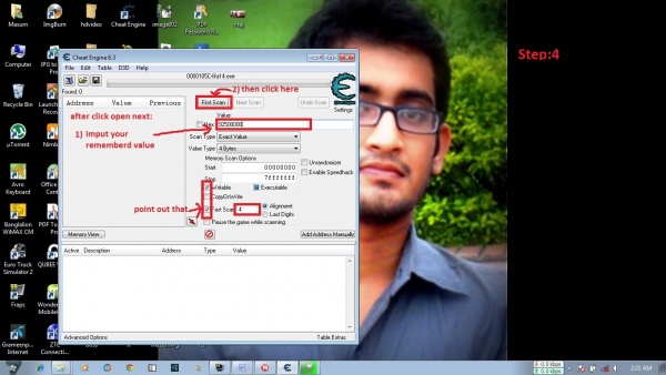 4)এরপর Value বাক্সে আপনার মনে রাখা সেই টাকার/xp পরিমানটা বসান ,এবং First scan এ ক্লিক করুন ।