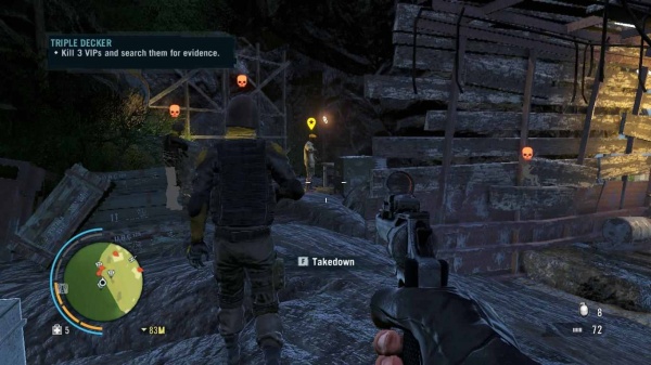 এবার তোমাকে একটি বেস ক্যাম্পে যেতে হবে। এখানে তোমাকে তিনজন তারকা চিহ্নিত লোককে খুন করতে হবে এবং তাদের বডি চেক করতে হবে প্রমাণের জন্য।