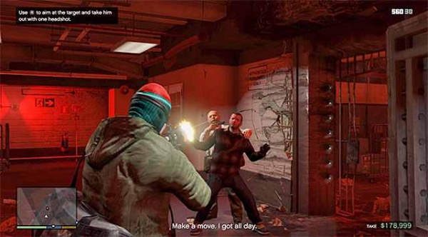 এবার ট্রেভর কে সিলেক্ট করতে হবে। ট্রেভর এর ভূমিকায় আসার পর মাইকেলের মাথার উপর দিয়ে গার্ডের মাথাকে অস্ত্রের টার্গেট বানাতে হবে এবং . . . . ঠুস!!