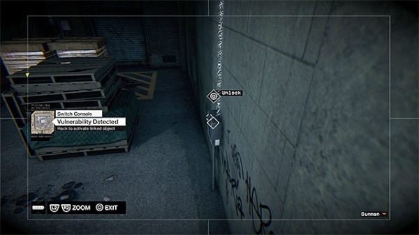কার্গো বেয় এর বাম সাইড ধরে এগোতে থাকে , এখানে দুইজন গার্ড থাকবে তাদেরকে এড়িয়ে যাও। এরপর লোকেশনের মাঝখানে এসে লুকাও এবং নিকটতস্থ ক্যামেরায় হ্যাক চালাও। আর ক্যামেরাটি দিয়ে নিচের ছবির মতো একটি সুইচ পাবে সেখানে সেটা খুঁজে বের করো।