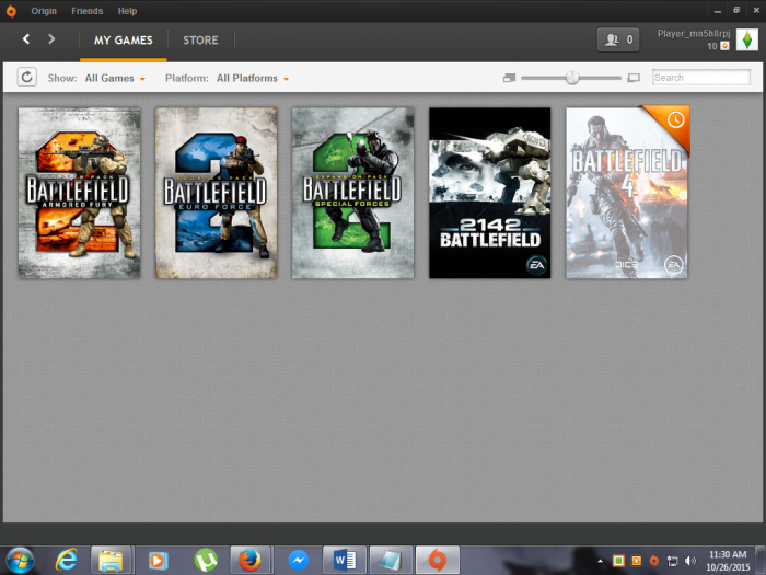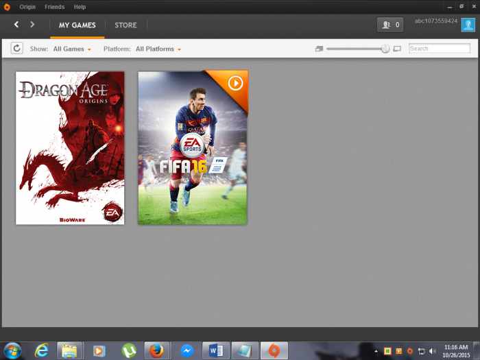 > এবার প্রথমে Origin এপপ টা চালু করো। ইউজারনেম এবং পাসওর্য়াড চাবে। এখন শুধুমাত্র নিচের গেমলিষ্ট থেকে তোমার পছন্দ মতো একাউন্টটি বেছে নাও।