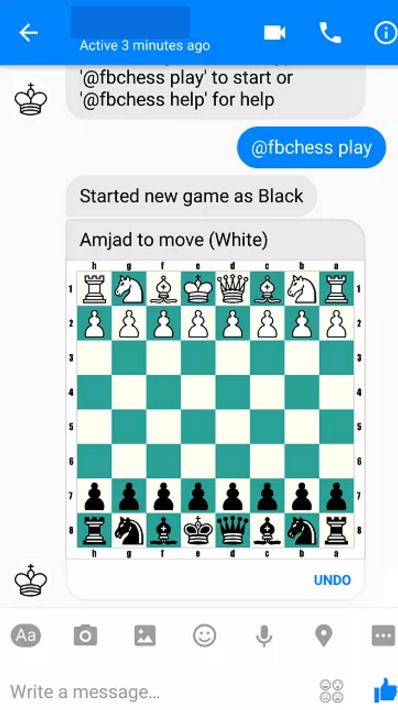মেসেঞ্জার এ দাবা খেলার জন্য আপনাকে যেটা করতে হবে তা হল যে বন্ধুর সাথে দাবা খেলতে চান তাকে @fbchess play লিখে মেসেজ পাঠান। সাথে সাথে আপনার সামনে একটি দাবা কোর্ট হাজির হবে।