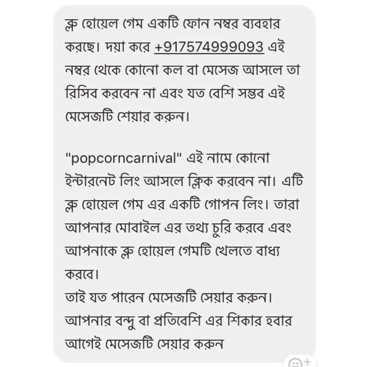 তবে "ব্লু হোয়েল" গেম নিয়ে সম্প্রতি কিছু মিথ্যা তথ্যা ফেসবুকে ছড়িয়ে পরেছে।