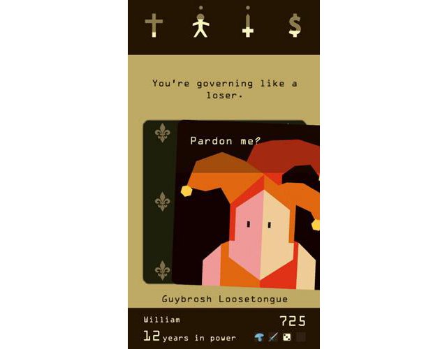 Reigns গেমটি একটি সোয়াইপ গেম যেখানে তোমাকে স্ক্রিণের ডানে এবং বামে সোয়াইপ করে গেমটি খেলতে হবে। গেমটিতে তোমাকে একটি দেশের কাহিনী শোনানো হবে স্টোরিলাইনের মাধ্যমে এবং বিভিন্ন পয়েন্টে তোমাকে কিছু সিদ্ধান্ত নিতে হবে। দেশের লোকজনের সেবা করতে হবে, চার্চের সেবা করতে হবে, শত্রুদের বিরুদ্ধে যুদ্ধ করতে হবে। গেমটির প্লে-স্টোর লিংক।