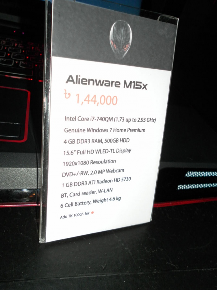 বাংলাদেশিদের সামনে এভাবেই আত্মপ্রকাশ করলো বিশ্বব্যাপী সমাদৃত "এলিয়েনওয়্যার"। ডেল-এর উচ্চমানের গ্রাফিক্স ও হার্ডওয়্যারের সমন্বয়ে তৈরি গেমিং কম্পিউটার 'এলিয়েনওয়্যার' ইতিমধ্যেই গেমারদের মধ্যে ব্যাপক জনপ্রিয়। একে বিশ্বের সবচেয়ে পাওয়ারফুল মেশিনও বলা হয়ে থাকে। এতে ব্যবহার করা হয়েছে ইন্টেলের শক্তিশালী ইন্টেল কোর-আই সেভেন টুয়েলভ ওয়ে মাল্টিপ্রসেসিং প্রযুক্তির প্রসেসর। এছাড়াও রয়েছে ৭টি কুলিং ফ্যান, একটি মিনি ট্রান্সফরমার ইত্যাদি। বাংলাদেশে এই প্রথমবারের মতো কম্পিউটার সোর্স নিয়ে এসেছে ডেলের এলিয়েনওয়্যার ল্যাপটপ। তিনটি ভিন্ন কনফিগারেশনের এই ল্যাপটপের উদ্বোধন করা হয় গতকাল মঙ্গলবার ঢাকার শেরাটন হোটেলে।