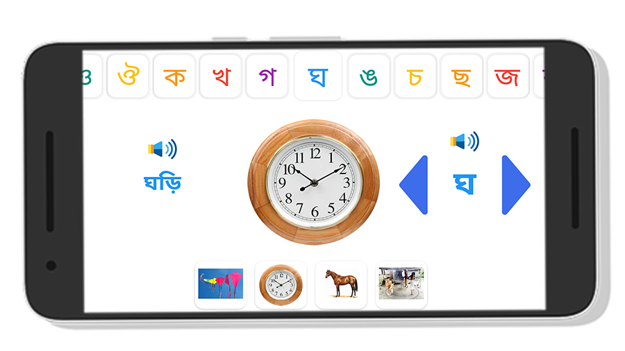 # প্রত্যেকটি স্বরবর্ণ, ব্যঞ্জনবর্ণ, ইংরেজী বর্ণমালা এর জন্য ৪ টি করে ছবি, শব্দ ও অডিও দিয়ে অক্ষর গুলো ছোট ছোট সোনামনিদের খেলতে খেলতে শিখানো হয়েছে।