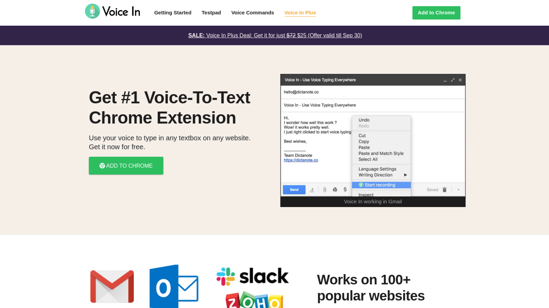 Voice In হচ্ছে DictaNote ডেভেলপারদের আরেকটি ডিকটেশন অ্যাপ, ডিকটেশনের কথা মাথায় রেখে তৈরি করা হয়েছে এই এক্সটেনশনটি। তাছাড়া Voice In হচ্ছে খুবই আকর্ষণীয় এবং লাইটওয়েট একটি এক্সটেনশন হওয়া সত্ত্বেও এটিতে কমান্ড ফিচার সহ আরও অনেক অপশন রয়েছে।