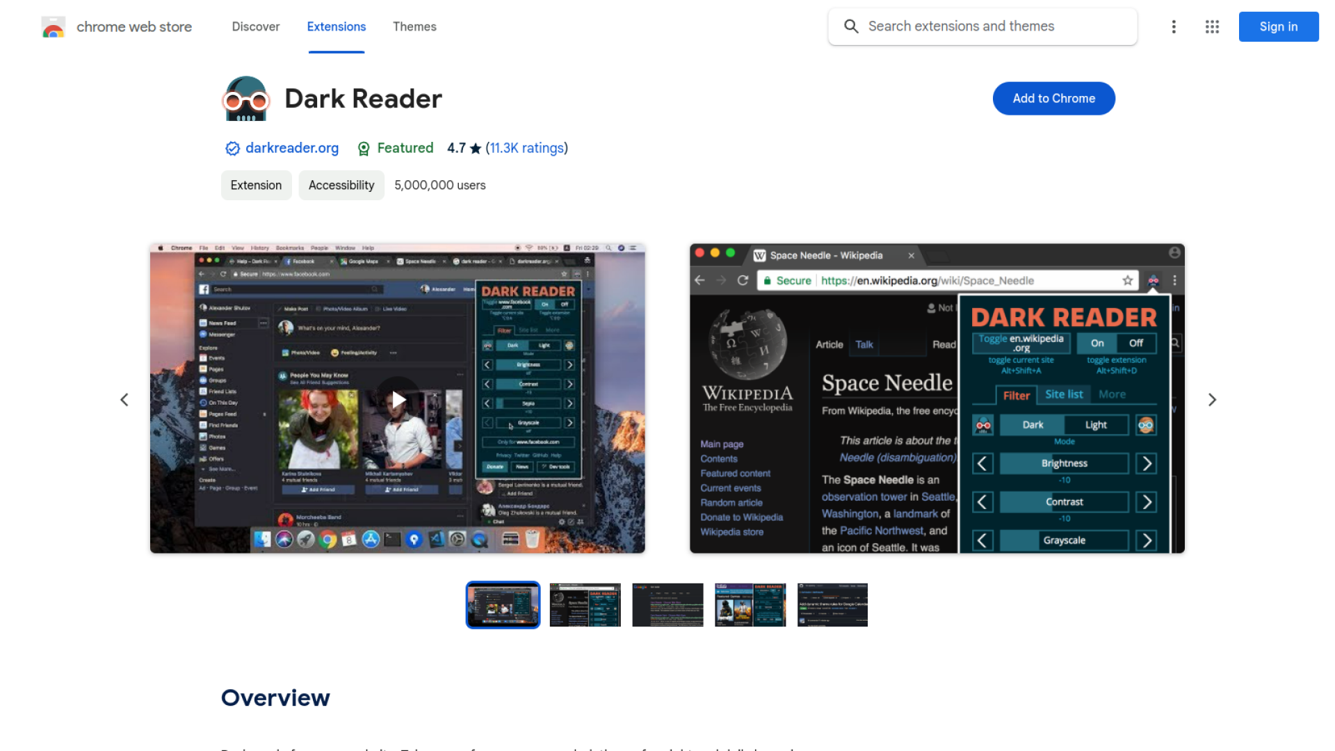 Dark Reader হল একটি জনপ্রিয় ব্রাউজার এক্সটেনশন। যা ব্রাউজিং করার সময় ওয়েব পৃষ্ঠা ডার্ক মোডে রূপান্তর করার জন্য ব্যবহার করা হয়। আপনার চোখের উপর চাপ কমাতে এবং রাতে ব্রাউজিং করাকে আরও আরামদায়ক করে তোলার জন্য Dark Reader ব্যবহার করা হয়। আপনার প্রয়োজনীয়তা এবং পছন্দের উপর নির্ভর করবে, আপনি এই Dark Reader ব্রাউজার এক্সটেনশনটি ব্যবহার করবেন কিনা৷ তবে এটি খুবই জনপ্রিয় একটি ব্রাউজিং এক্সটেনশন। Dark Reader এক্সটেনশনটি আপনার ইন্টারনেট ব্রাউজারের সময় কানেকশন ড্রপ অথবা ইন্টারনেট স্লো হওয়ার মতো সমস্যাগুলো ছাড়া সকল ওয়েবসাইটের জন্য ডার্ক থিম অথবা নাইট মোড এনাবেল করতে পারবেন।