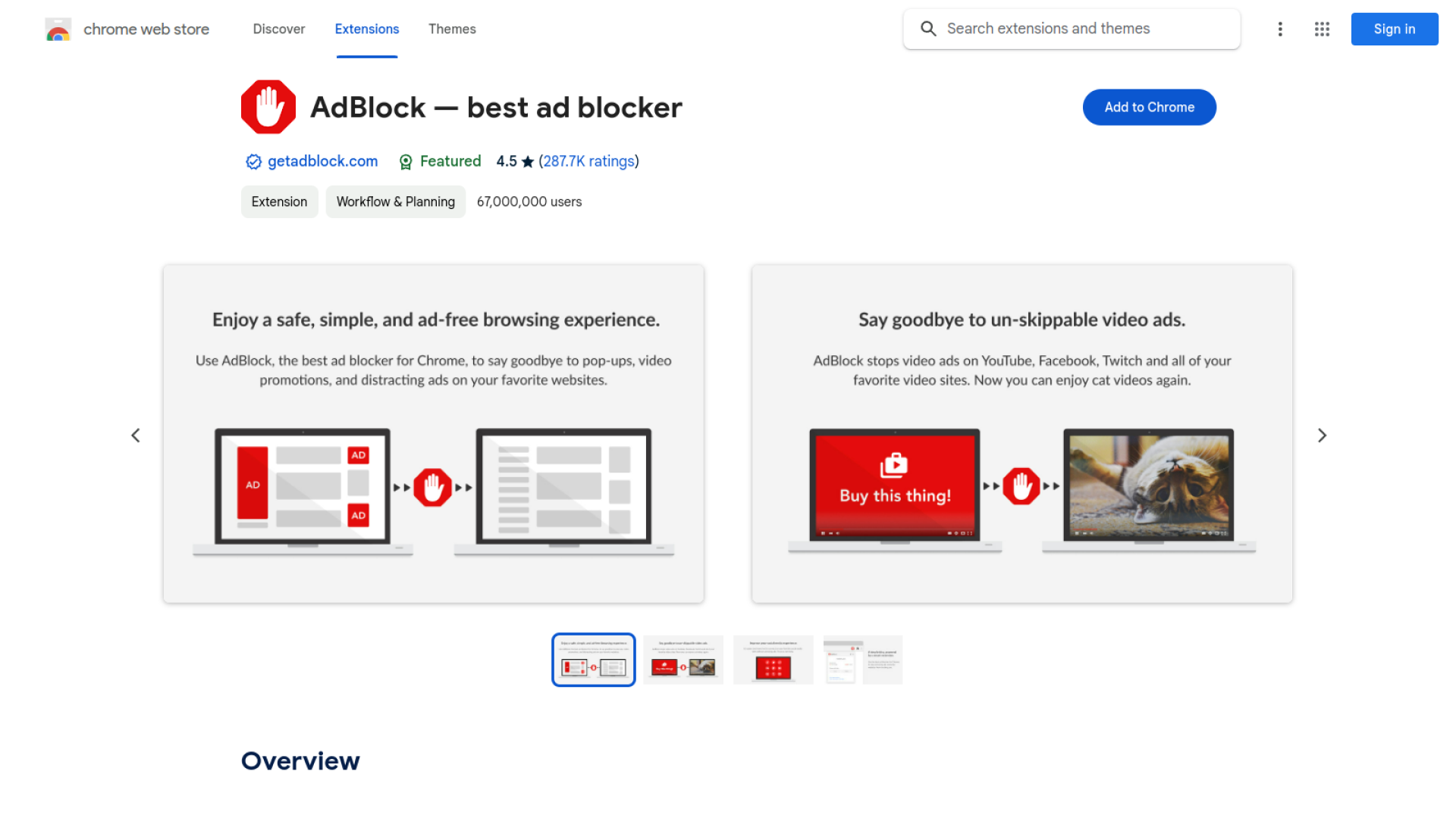 আমরা কেউই চাই না ওয়েবসাইট ভিজিট করার সময়, কোন কোম্পানির অ্যাড আমাদের চোখে আসুক। AdBlock এর মাধ্যমে আমরা সহজেই যেকোনো ওয়েবসাইটের অ্যাড ব্লক করে দিতে পারি। সবচেয়ে ভালো একটি বিষয় হলো এটি ব্যবহার করতে কোন অর্থ প্রদান করতে হয় না। সম্পূর্ণ ফ্রিতেই AdBlock এক্সটেনশনটি ব্যবহার করতে পারবেন। AdBlock হলো জনপ্রিয় একটি বিজ্ঞাপণ বন্ধকারী ব্রাউজার এক্সটেনশন। যার মাধ্যমে আপনি সকল ওয়েবসাইট থেকে বিরক্তিকর বিজ্ঞাপনগুলোকে বন্ধ করে দিতে পারবেন।