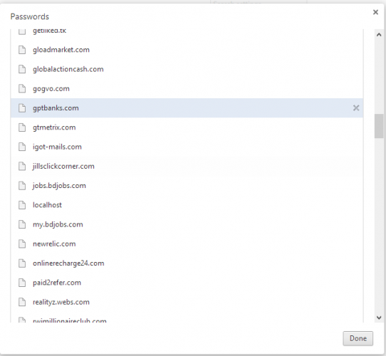 দেখবেন নিছের ছবির মতো একটা উইন্ডো ওপেন হবে। এখন যে সাইট এর Password দেখতে চান সেখে মাউস রেখে ক্লিক করুন তারপর show ক্লিক করুন দেখবেন পাসওয়ার্ড শো করবে।